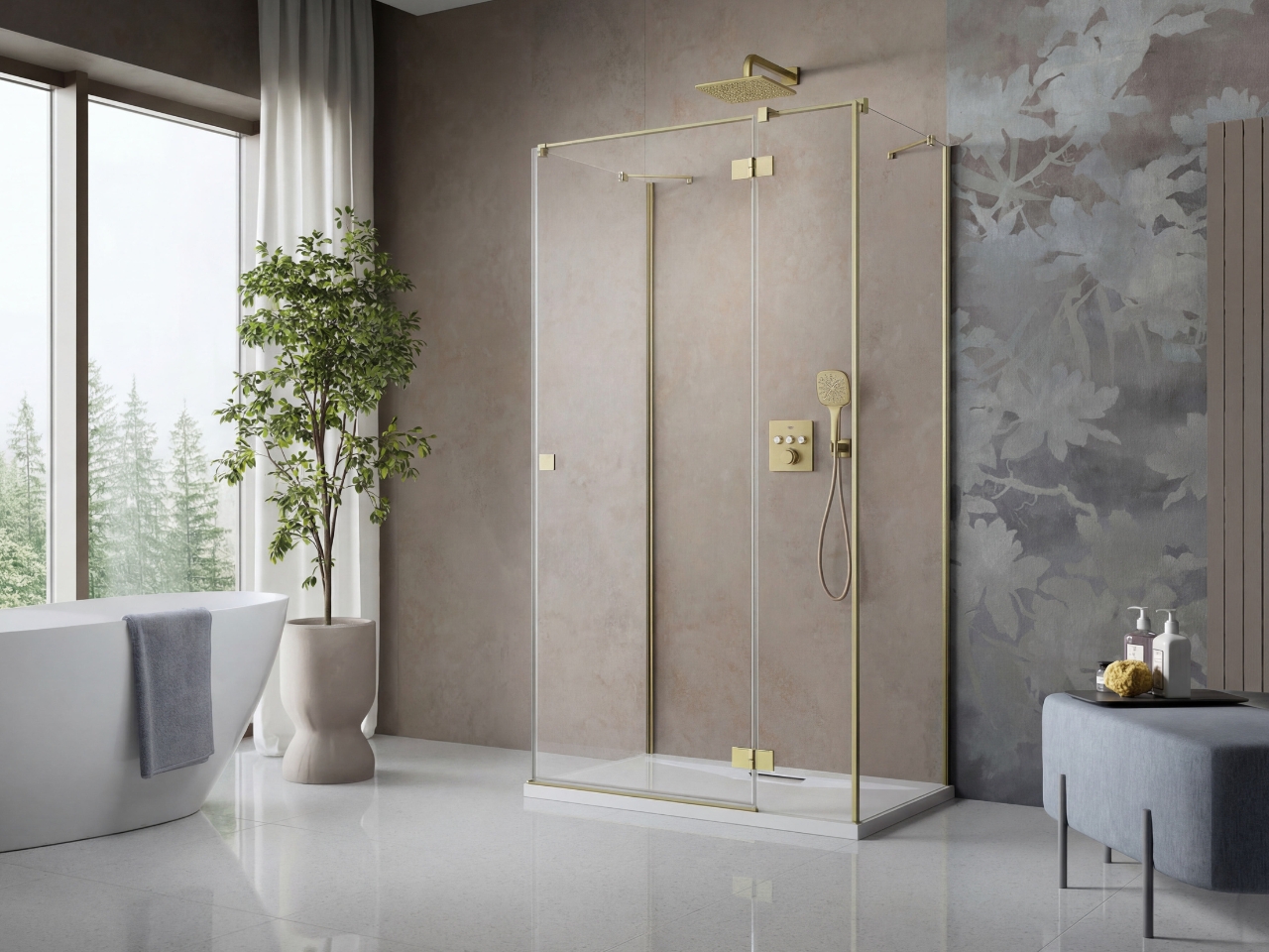 Szálcsiszolt arany zuhanykabinok, zuhanyfalak és zuhanyajtók