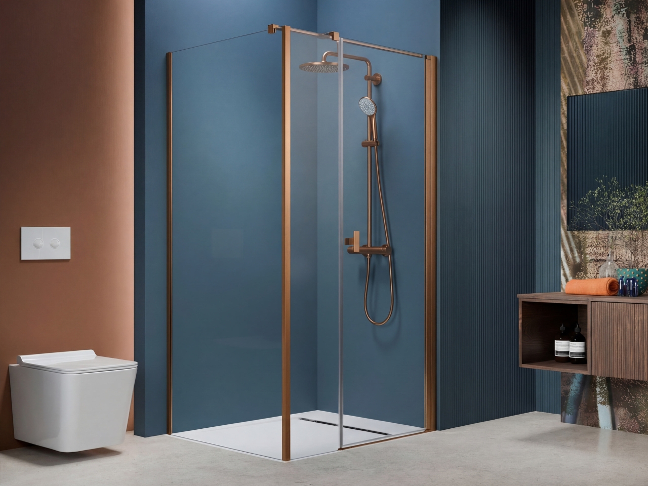 Szálcsiszolt réz zuhanykabinok, zuhanyfalak és zuhanyajtók